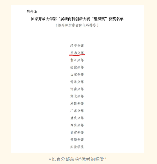 近日,国家开放大学第二届新商科创新大赛作品赛评选结果揭晓,长春开放大学经管系师生在此次大赛中获一等奖1项、三等奖4项,充分展现了我校在新商科教育领域的深厚底蕴和卓越教学成果。