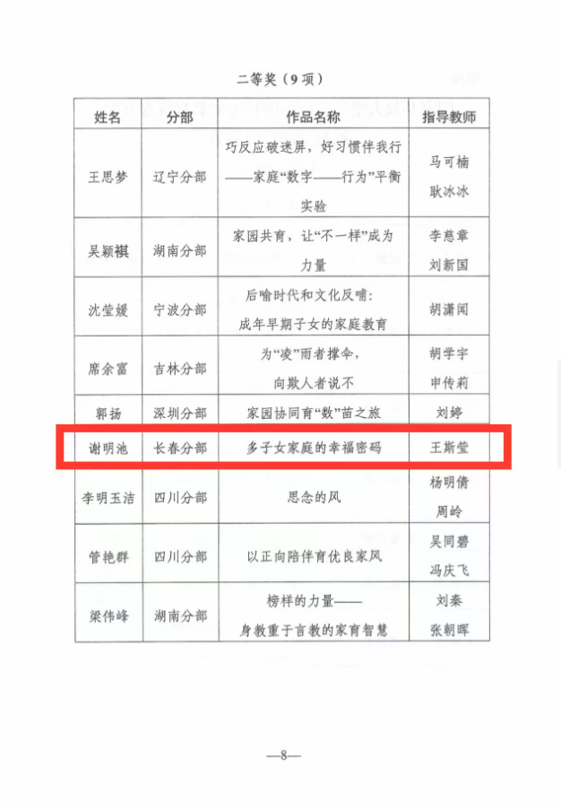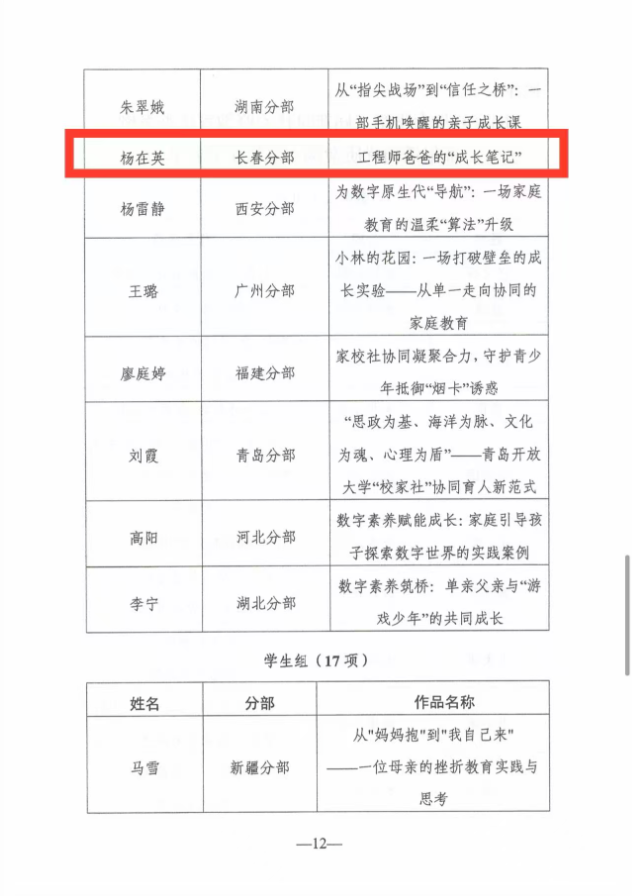 此次获奖是长春开放大学深耕家庭教育领域的又一重要成果。我们将不断激励更多师生投身家庭教育事业,为推动新时代家庭家教家风建设、构建家校社协同育人新格局,持续贡献长春开放大学的智慧和力量。