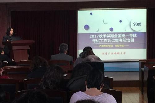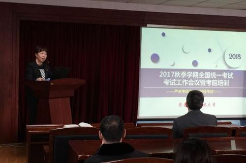 根据国家开放大学关于考点设置和期末考试的相关要求,为了进一步加强和规范考试管理,严肃考风考纪。长春电大在2018年1月10日依次召开了2017秋季学期全国统一考试考试工作系列会议——考前培训会、巡考工作会议、工作人员会议。