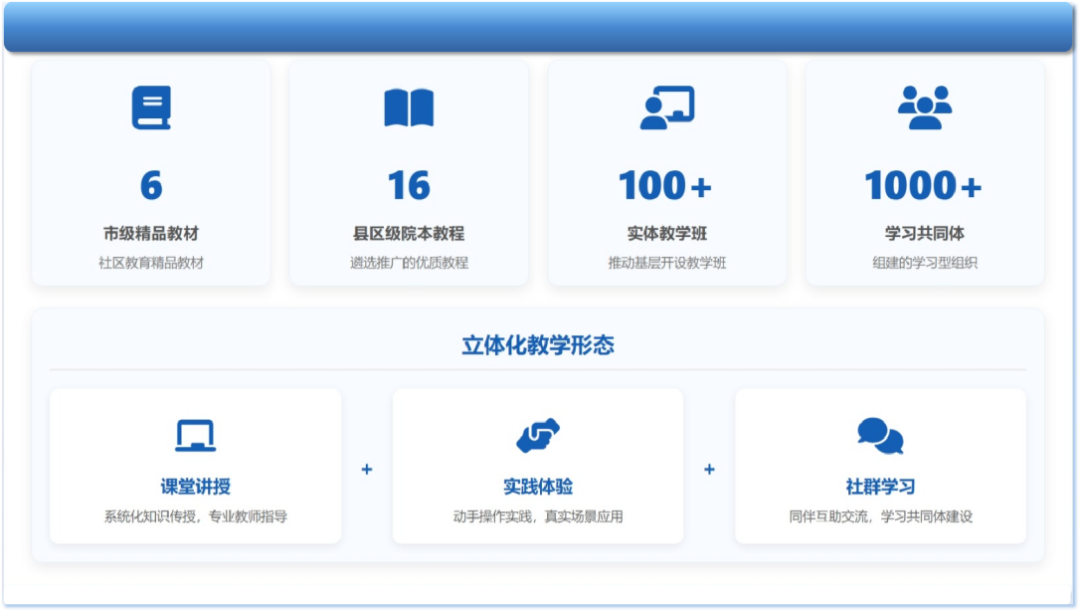 “推进教育数字化,建设全民终身学习的学习型社会、学习型大国。”是党和国家在新时代赋予教育事业的战略使命,是推进中国式现代化、促进人的全面发展的基础性工程。社区教育作为国民教育体系的“最后一公里”,在服务全民终身学习、提升国民素质、促进社会和谐中发挥着重要作用。
