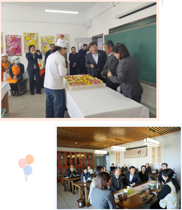 上午,调研组一行参观了长春开放大学校史馆、社区教育文化阵地以及老年教育传统文化阵地,全面了解我校的办学历程、教育成果与鲜明特色。深入老年教育教学课堂,实地观摩声乐、芭蕾舞、八段锦、形体、茶文化、中式面点(非遗花饽饽)、电钢琴、国画(花鸟)等特色课程。