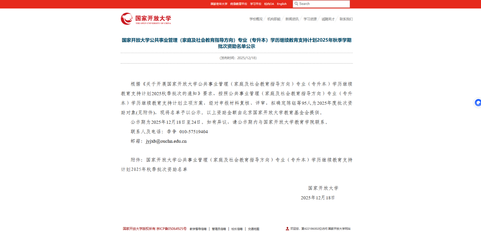 国家开放大学公共事业管理(家庭及社会教育指导方向)专业(专升本)学历继续教育支持计划2025秋季批次资助名单.docx