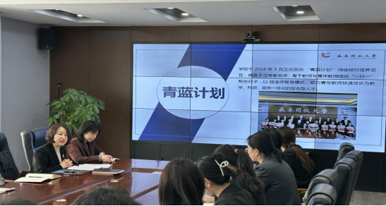 王爽爽副处长首先对2023-2024年“青蓝计划”开展情况进行全面总结。她从计划实施概况、取得成绩、建设高素质“三能”教师队伍等方面梳理进展,重点展示了青年教师在教学技能、课程设计及科研能力上的提升成果,充分肯定了蓝方导师“传帮带”作用的发挥,为青年教师的成长提供了有力支持。