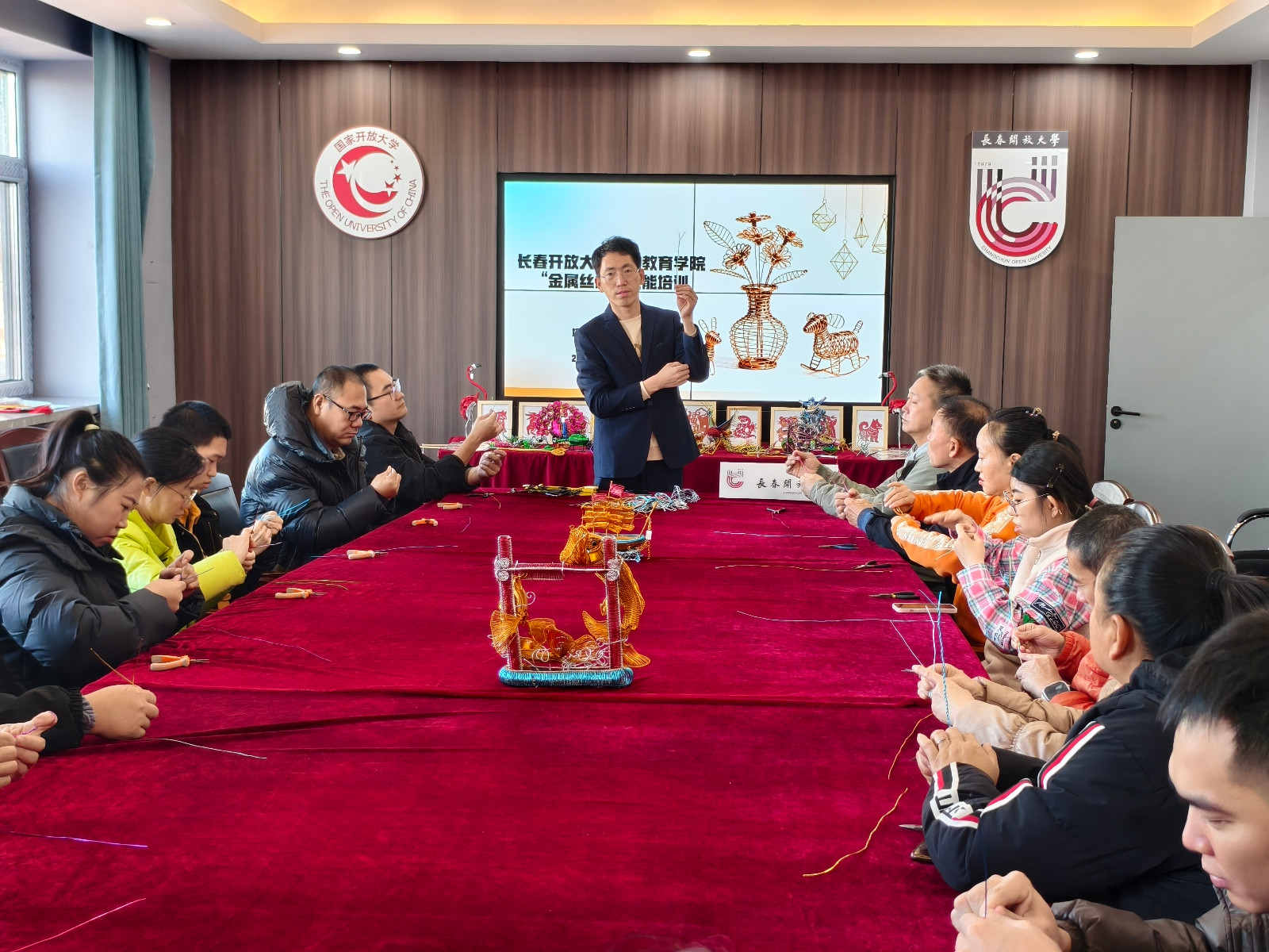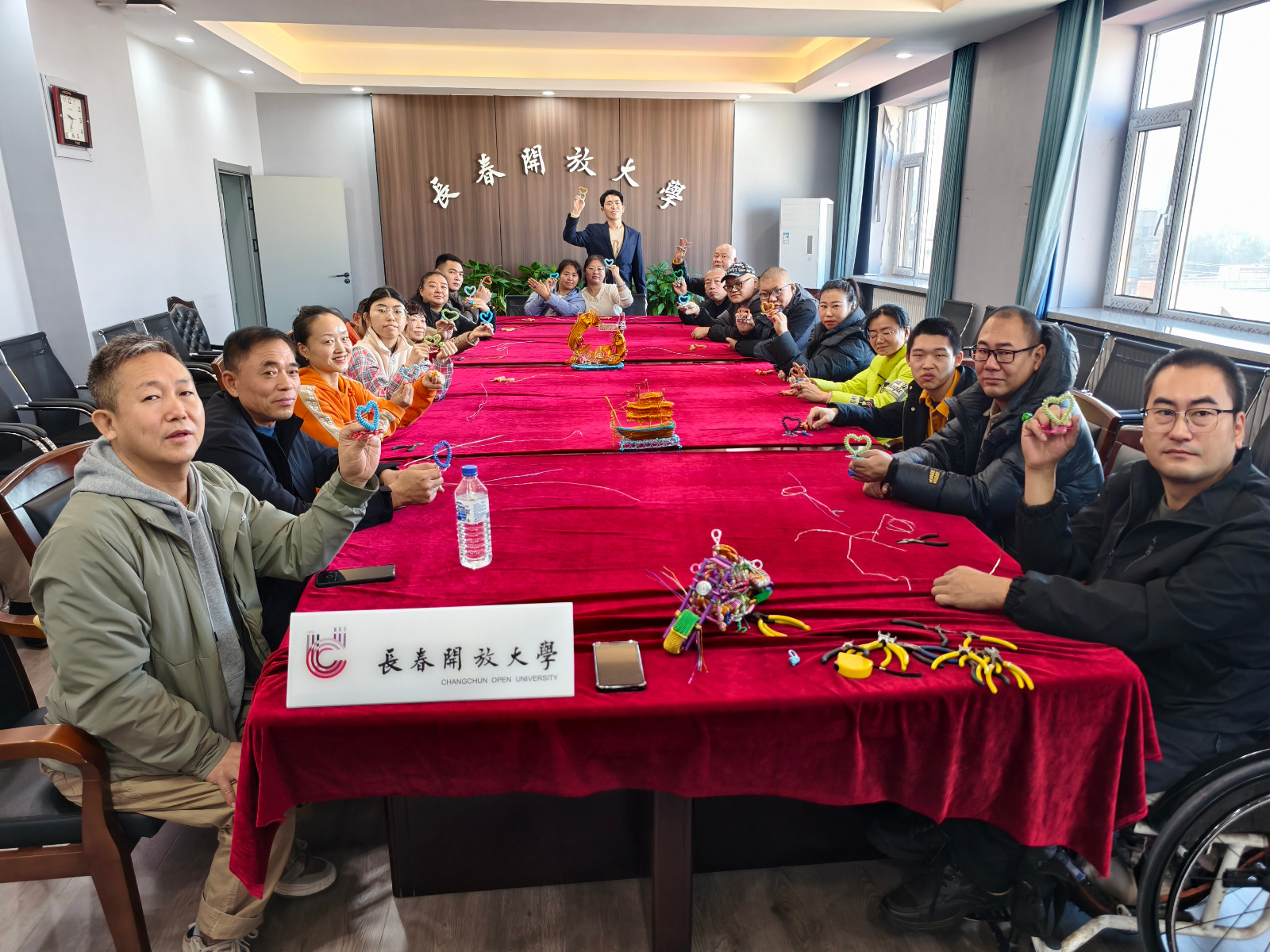 2025年11月14日,长春开放大学特殊教育学院“金属丝编”技能培训开课,学院优秀毕业生李岩峰受邀担任主讲教师,通过“手把手”实操教学,为在校特教学员传授金属丝编技艺,以现场学习实用技能为特色模式,深化学院“培养学生树立自强不息、自食其力,奉献社会精神”的人才培养目标。