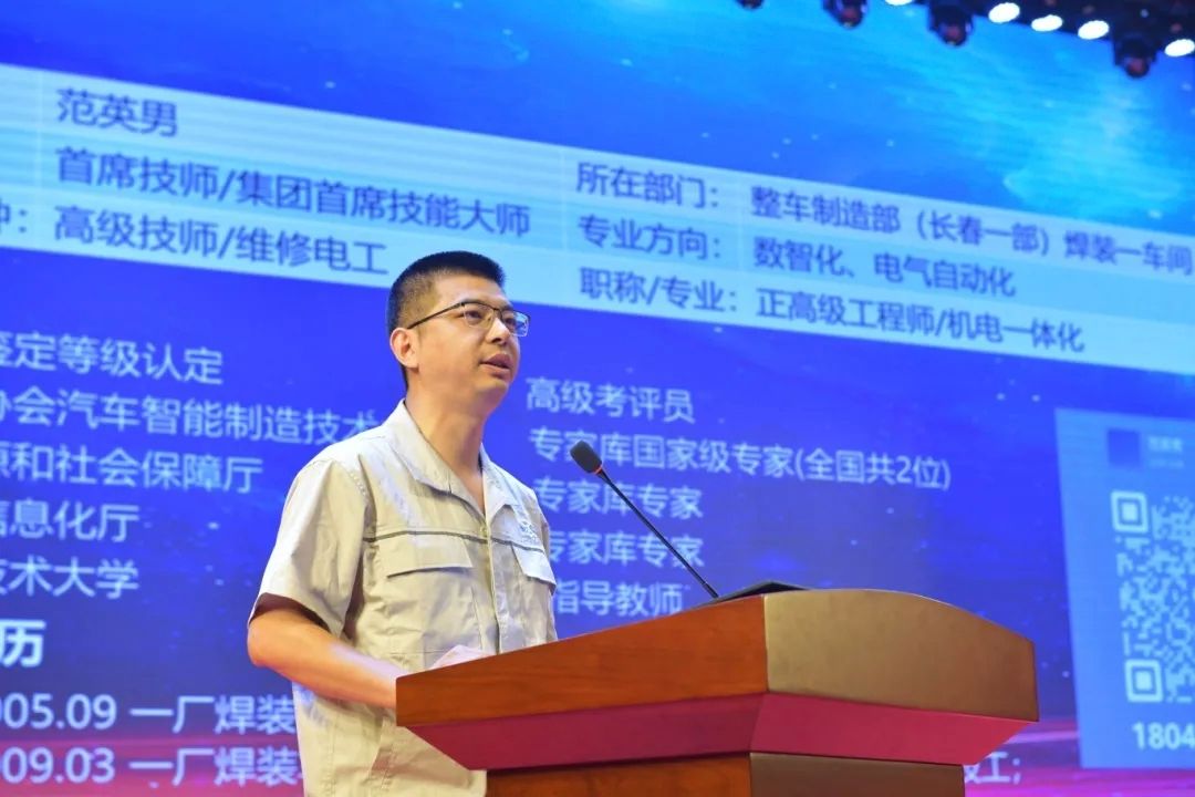 2024年全国新时代“事迹特别感人的百姓学习之星”、一汽—大众汽车有限公司首席技师范英男(正高级工程师),以“扎根生产一线 奋发学习成就工匠之路”为题,从自我提升筑牢理论基础、勇于挑战成为全国技术能手、自主创新勇攀技术高峰、坚守匠心勇担技艺传承重任四个方面,分享了通过终身学习成为吉林省高层次A类人才和“全国技术能手”、与企业共成长圆梦的励志故事,并鼓励学生珍惜校园时光,多读书、明学习意义。