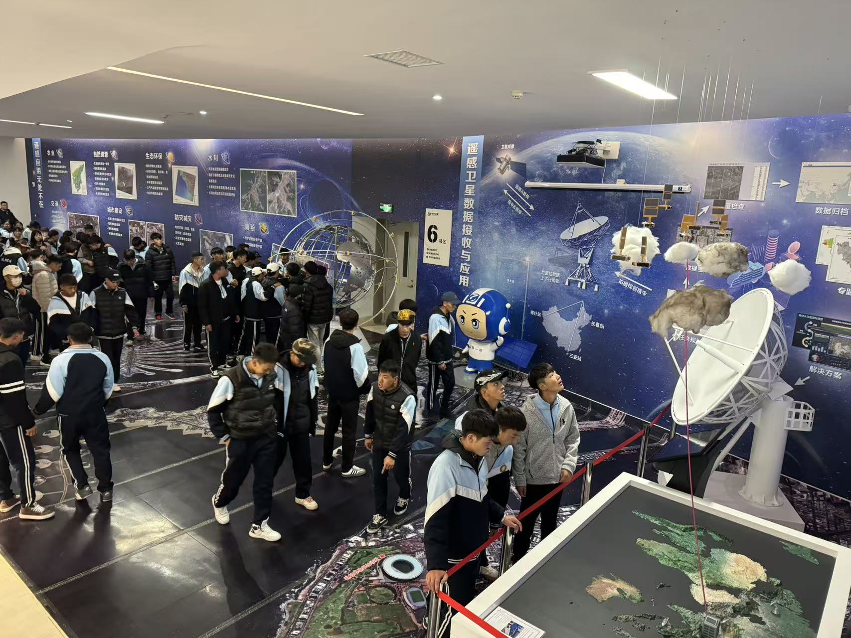 在长光卫星航天科普教育基地,读者们首先被“一箭四星”模型震撼。这座1:1还原的模型,生动再现了我国第一颗自主研发的商用高分辨率遥感卫星的发射情况。沿着科普长廊前行,从卫星设计原理到太空环境模拟,从材料选择到能源系统,立体环绕的科普壁画、流程图表与实物展品将深奥的航天知识转化为直观的视觉体验。