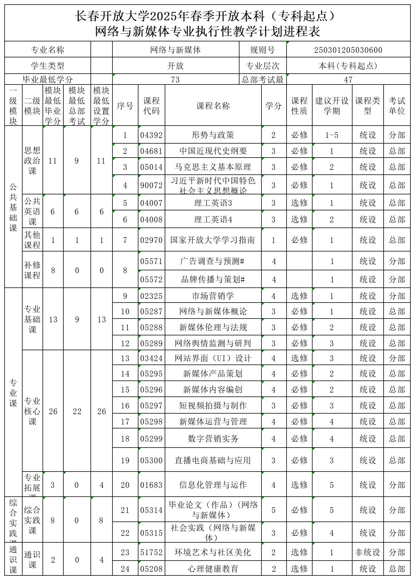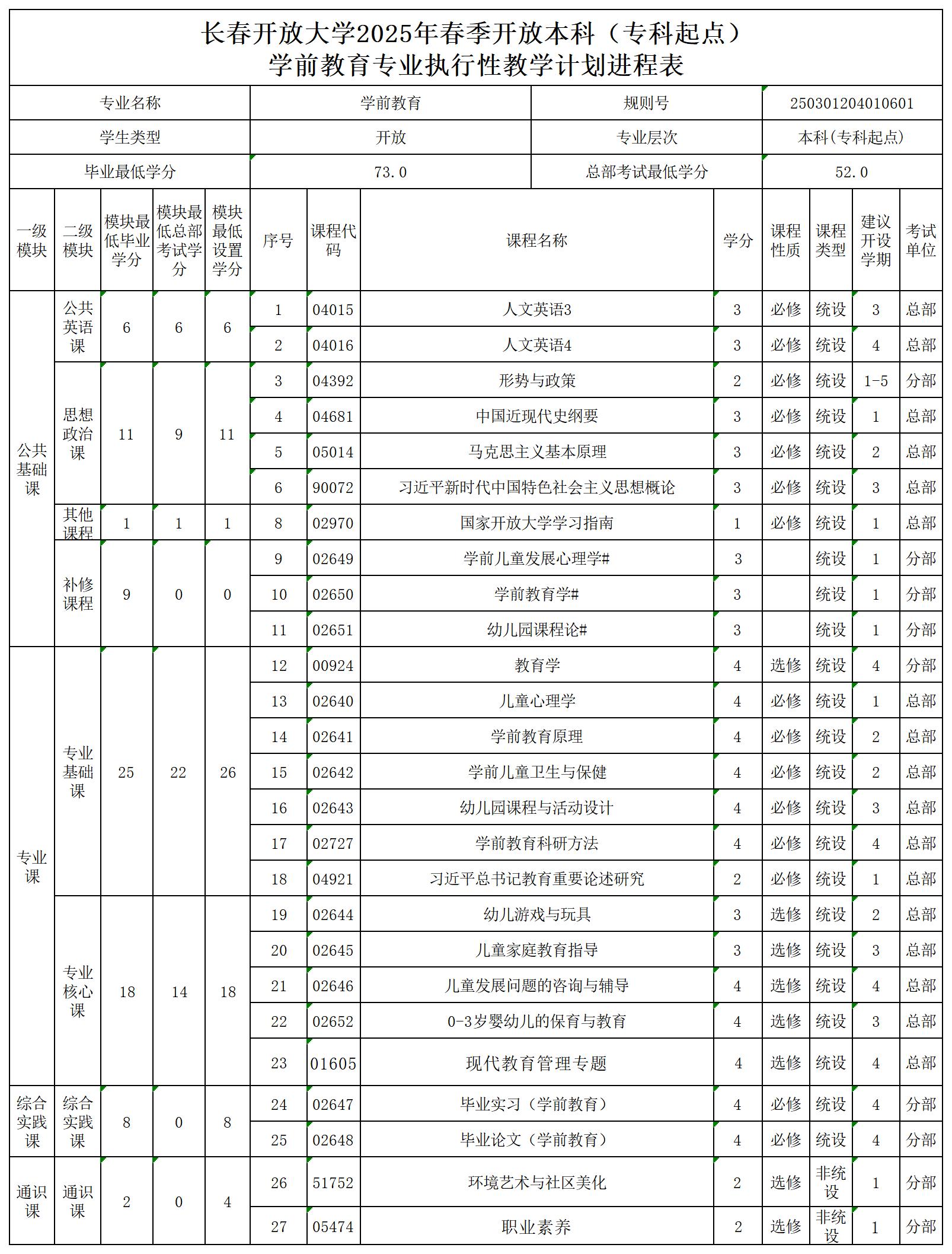 << 上一篇:2024秋季长春开放大学文法系专科专业执行性教学计划进程表