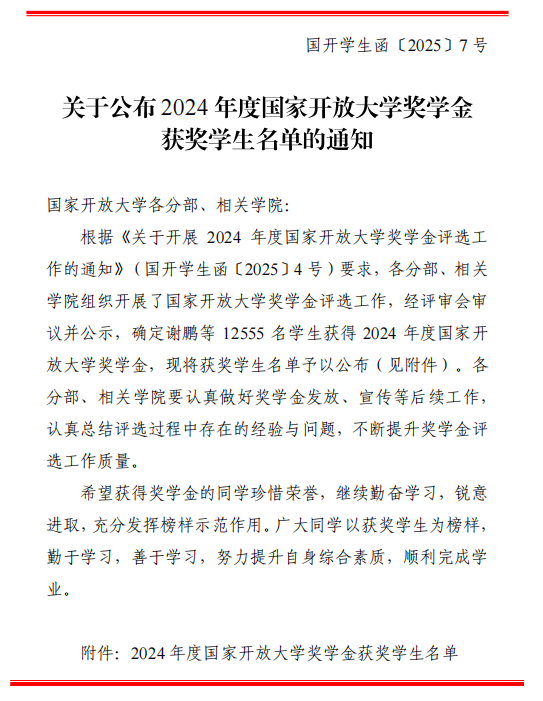 喜报!多名学员荣获2024年度国家开放大学奖学金
