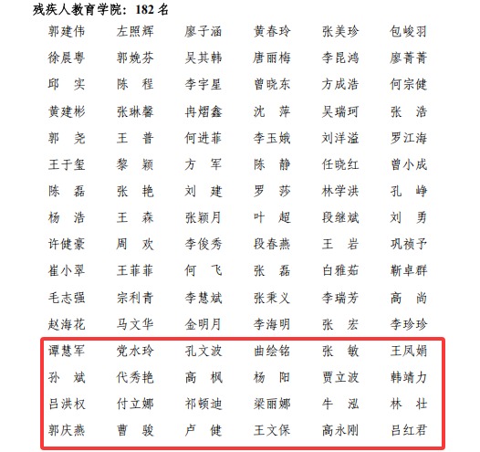 根据《关于开展2024年度国家开放大学奖学金评选工作的通知》(国开学生函〔2025〕4号)和《国家开放大学残疾人教育学院关于开展2024 年度国家开放大学奖学金评选工作的通知》(残院字〔2025〕9号)的通知,长春开大特教学院认真组织了本次奖学金的评选和推荐工作。经过学院初审,国开残院分部复审,国开总部终审,长春开大特教学院共有孔文波等49名同学荣获2024年度国家开放大学奖学金,获奖名单见下方。