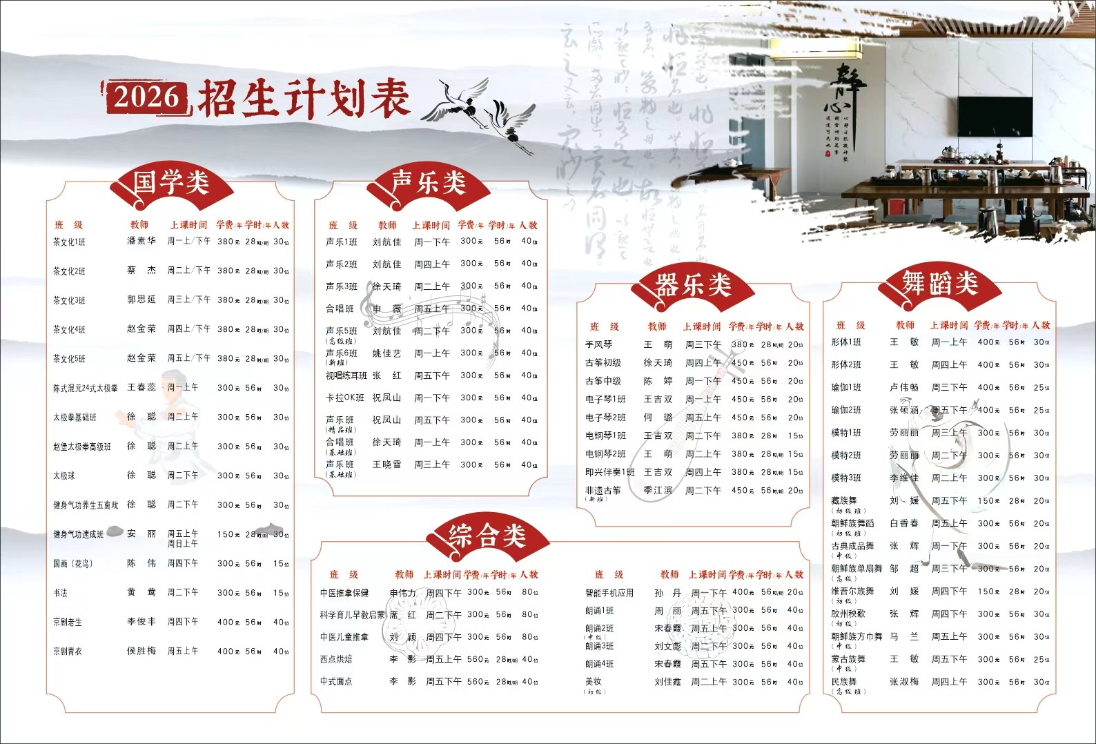 长春市宽城区北京大街62号(西广场东侧) 长春开放大学A座 办公电话:0431—82857795 舞蹈类-赵老师:19990521776 声乐类-徐老师:19990521830 声乐类-刘老师:19990523690 声乐类-姚老师:13578701833 器乐类-王老师:18166822878 国学类-孙老师:19990521716 书法类-张老师:13596009009